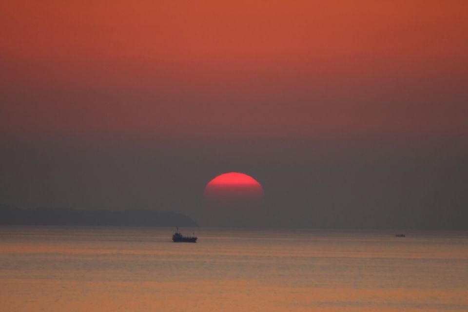 幻のような船が元の姿になった頃、陽は随分と傾いて、美しい夕陽を見せてくれた。曇天にがっかりした一日だったけれど、最後に思いもよらぬ奇跡の風景に出会えた。